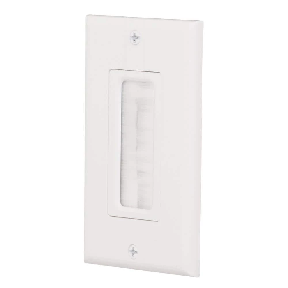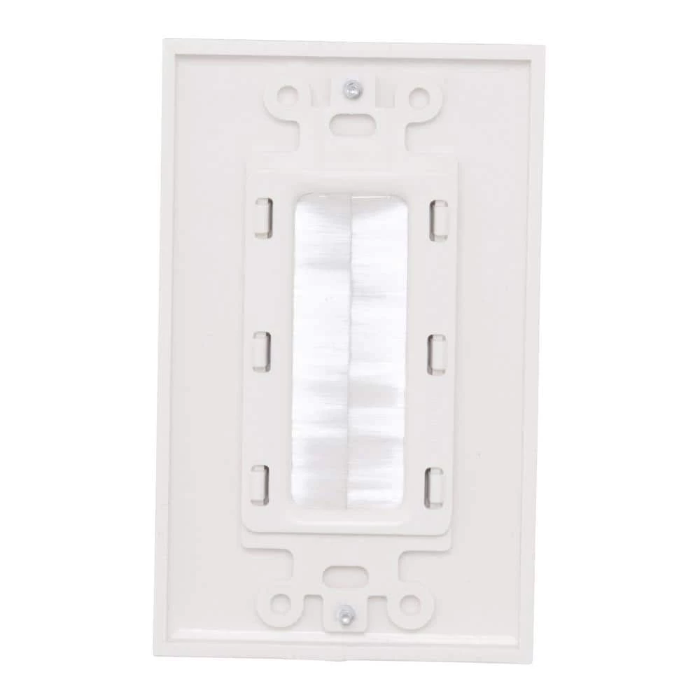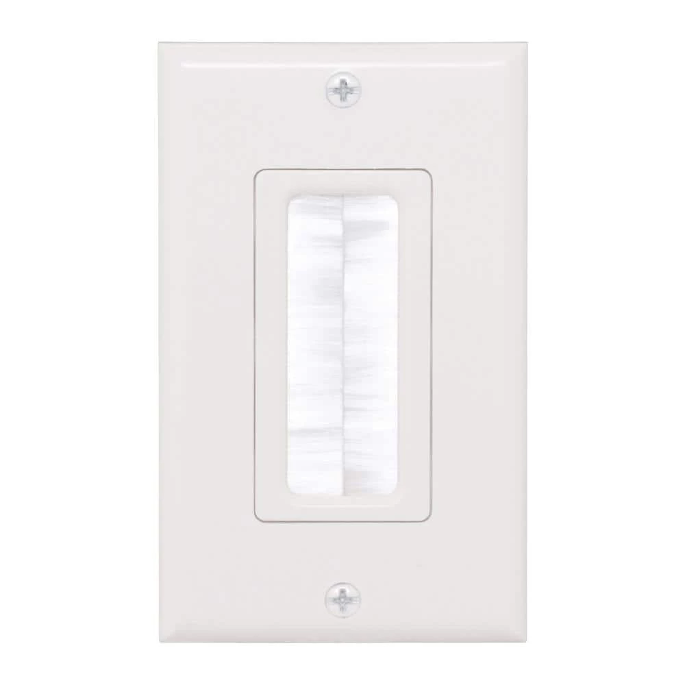 Commercial Electric’s patented Single Brush Wall Plate is used to install low voltage cables behind your HDTV, amplifier or other audio video devices. The Single Brush Plate is designed to be installed into a low voltage mounting bracket (sold separately) that is installed into the wall. Decor style cover plate is included.