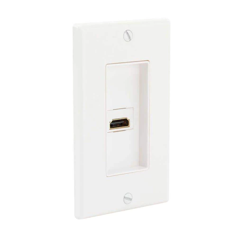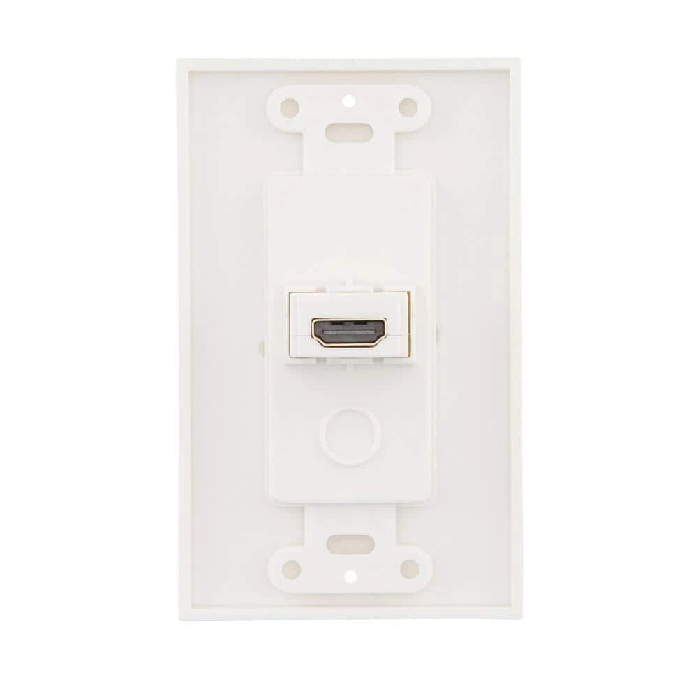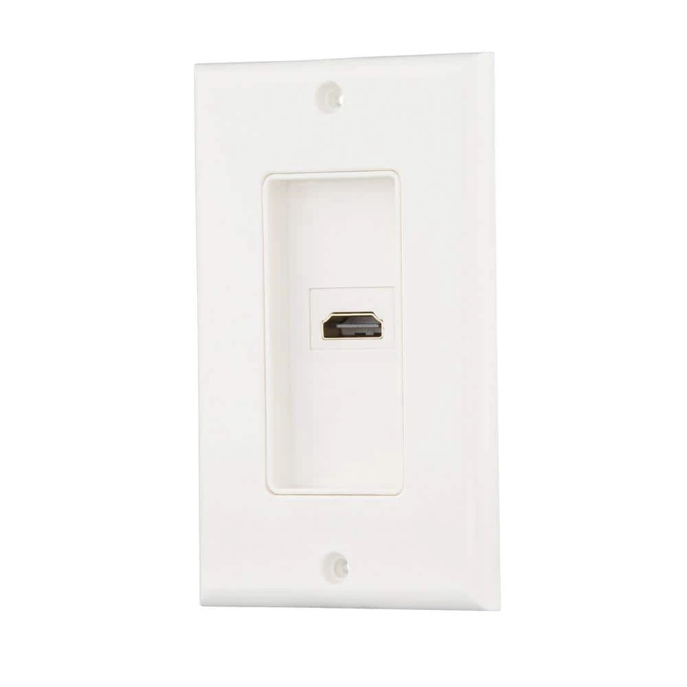 Easily install an HDMI cable connection into a wall using the Commercial Electric 1-Gang HDMI Wall Plate. Standard size plate mounts easily to wall. Accommodates HDMI cable.
