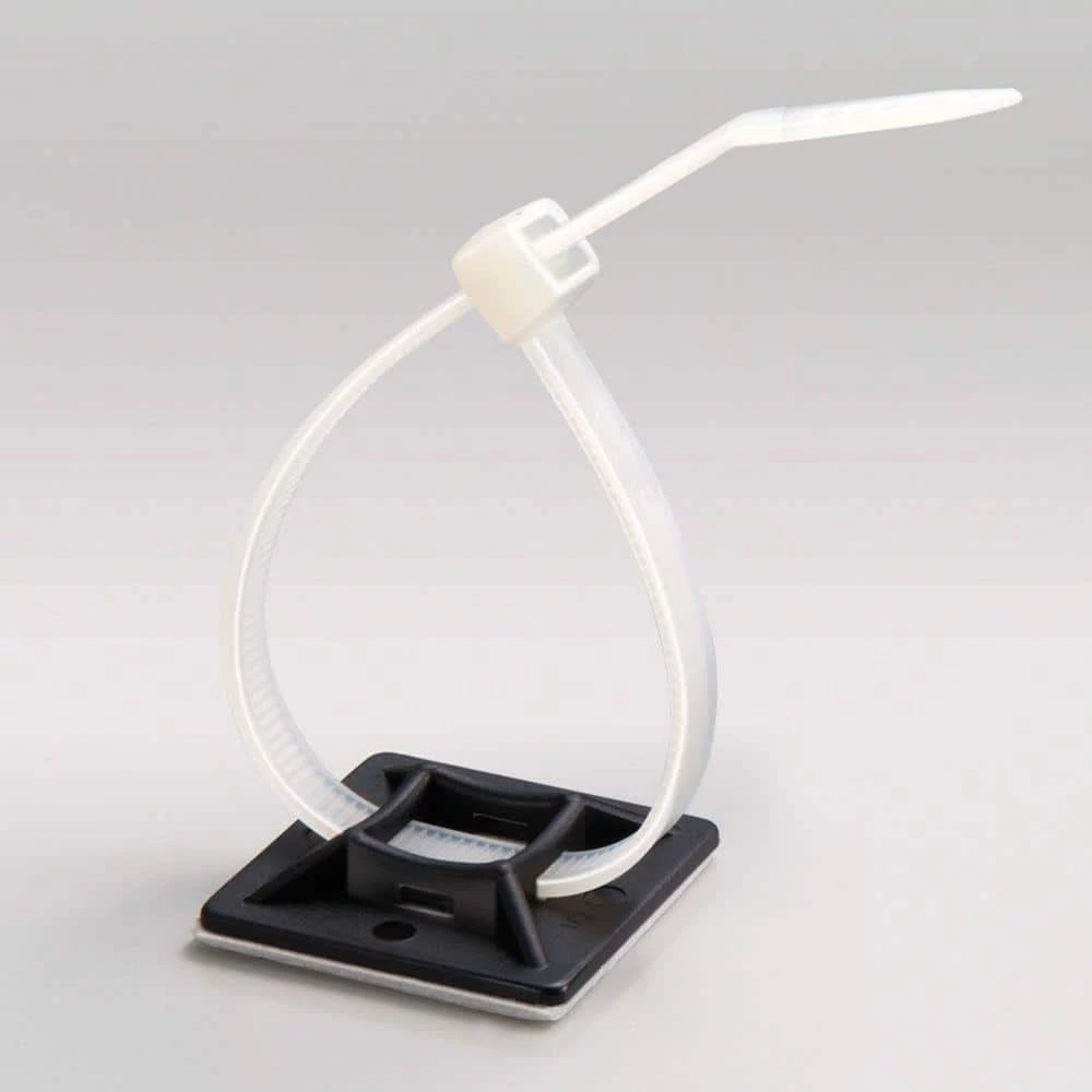 A mounting device offers a safe and secure mount for cable tie, which is available in either “screw mount” and “self-adhesive mount”. This product is designed to hold heavier cable bundles and offer easy and flexible installation with “4-way” entry. Besides, it provides a very high pull-off force for the cable bundles attached on it with specially-developed adhesive.