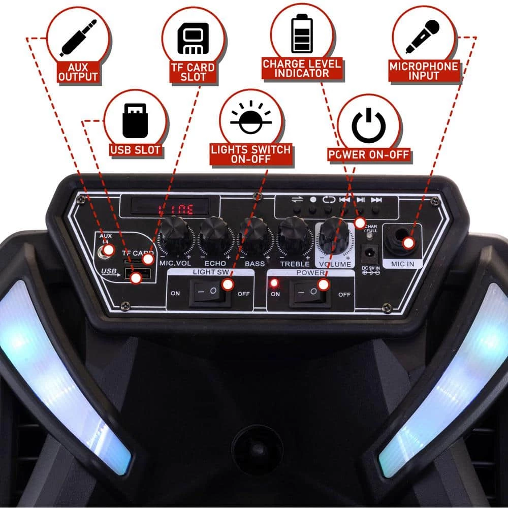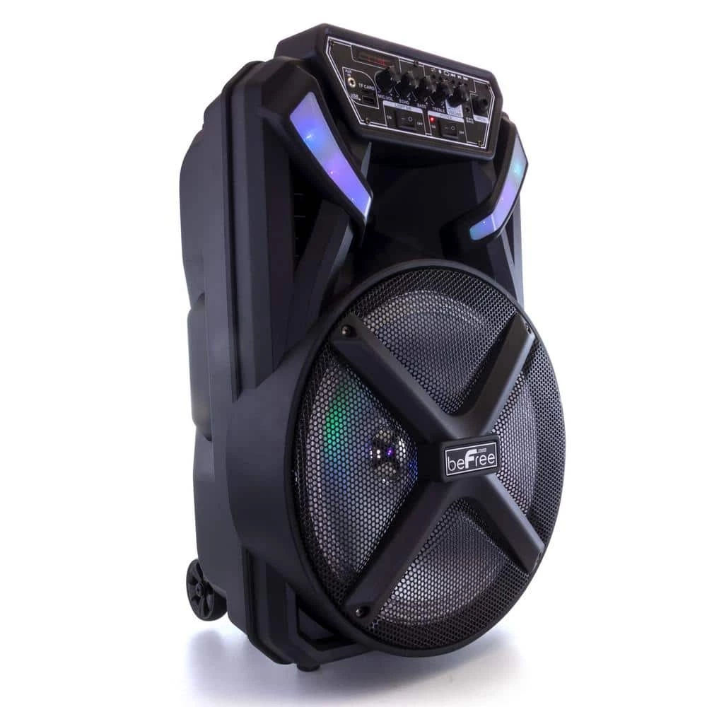 Take the party anywhere with the BEFREE SOUND 12 in. BT Portable Rechargeable Party Speaker. This 10 lbs. party speaker is fully mobile with rolling wheels and a carrying handle for easy transportation. Not only is this speaker mobile, but this system comes complete with sound reactive lights, USB/TF compatibility, a remote control and an FM radio for an all in 1 party experience.