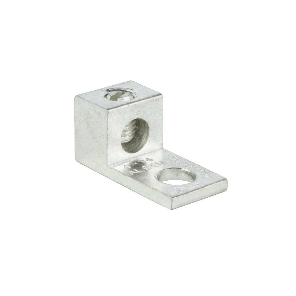 The 1-Hole Aluminum Dual Rated Mechanical Lugs are used in power and grounding electrical connection applications, like termination of a conductor. Aluminum construction with tin-plating making the lug dual rated for use with copper and aluminum conductors. This lug has a single mounting hole with a 1/4 in. size stud.