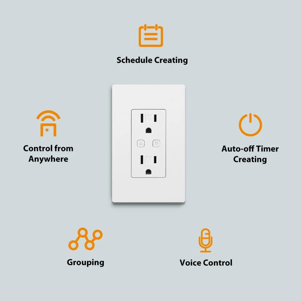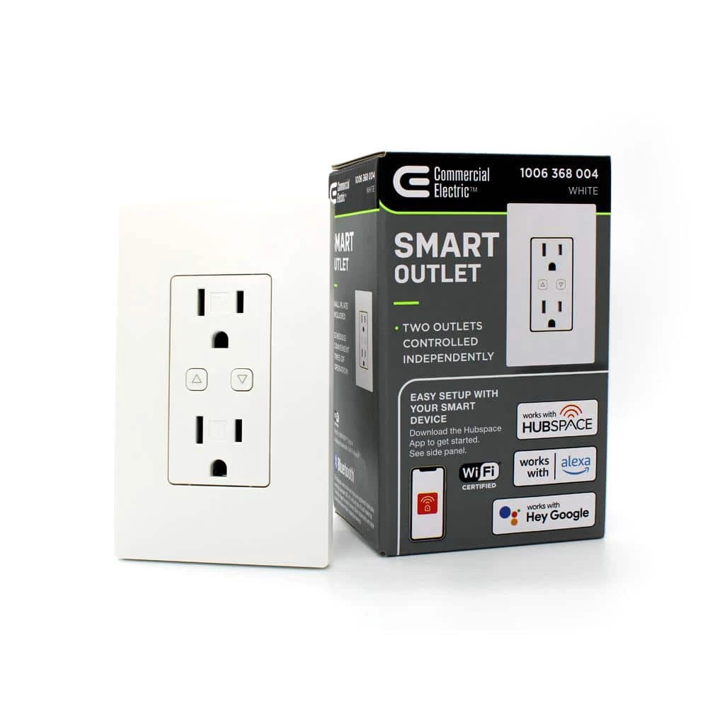 The Commercial Electric Wi-Fi and Bluetooth enabled smart outlet allows you to control your lights, appliances, or any other device via app from wherever you are. No hub is required. The Commercial Electric Smart Outlet allows you to use your voice to turn on or off the device of your choice. You can also pre-set on/off schedules via the Hubspace app for Android or iPhone. Schedule your outlets to turn on/ off automatically or schedule your fan to turn on/off automatically. Use this smart outlet with any home devices or appliances.