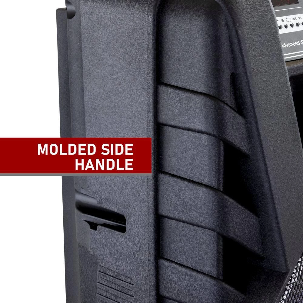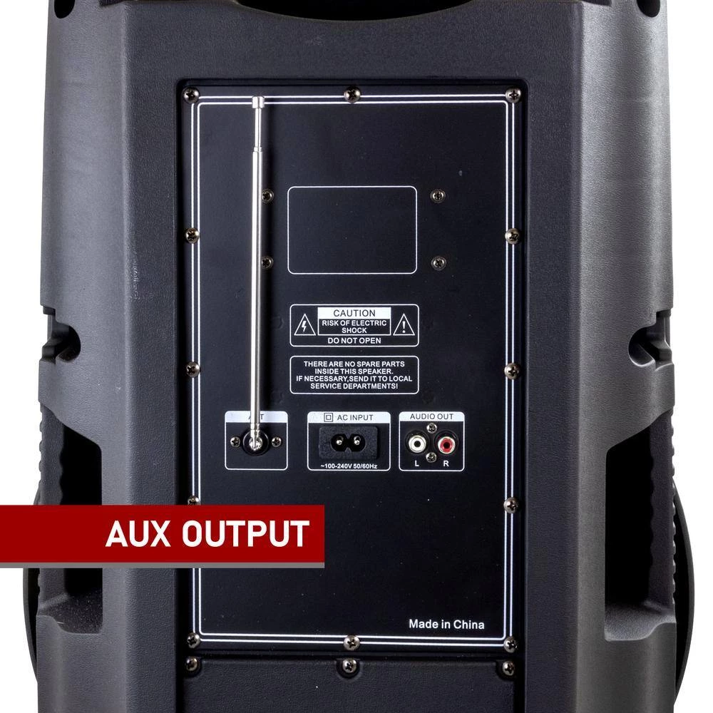 Take the party anywhere with the BEFREE SOUND 15 in. Bluetooth Portable Party Speaker with LED Lights! This 20 lbs. party speaker is fully mobile with rolling wheels and a carrying handle for easy transportation. Not only is this speaker mobile, but this system comes complete with reactive party lights, USB/SD slots, a microphone, and an FM radio for an all in 1 party experience.