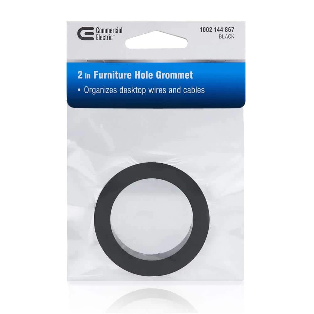 Keep your electrical cords organized around your entertainment center, TV stand, or desk by using this grommet by Commercial Electric. Simply snap into desktop with recessed hole for neat and tidy cable organization. Covers 2 in. furniture holes.
