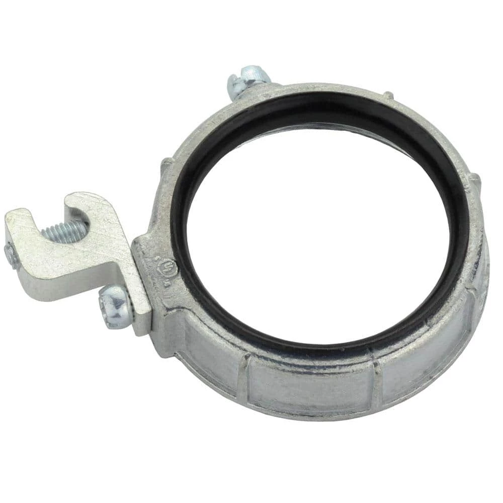Commercial Electric’s Insulated Grounding Bushing with Lugs are used on the end of threaded rigid or IMC conduit to provide a compact means of grounding conduit through an insulated bushing. Thermoplastic liner provides a smooth, plastic liner that won’t damage the conductors. Lay-in lug style provides an easy means of inserting a ground wire. After screwed onto the conduit, the set screw on the grounding lug can be loosened to insert the ground wire. When the set screw is tightened again, it compresses the ground wire to the lug. This creates a ground between the lug, bushing, and conduit.