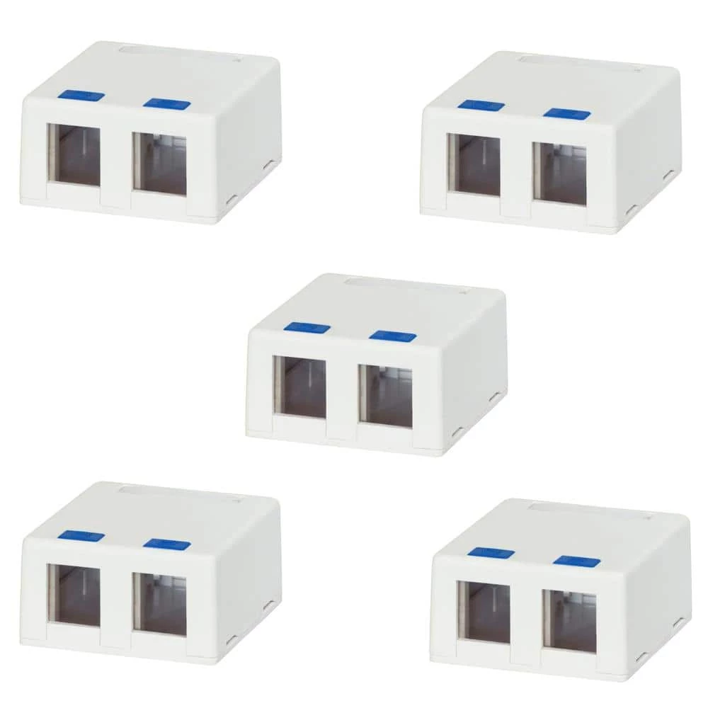 Commercial Electric’s 2-Port Category 5e and Category 6 Surface Mounting Box is designed to hold standard size keystone inserts such as category 5e jacks, category 6-jacks and category 3-jacks. It mounts easily and quickly to most walls, floors, baseboards and furniture. Keystone ports are located at the front of the mounting box.