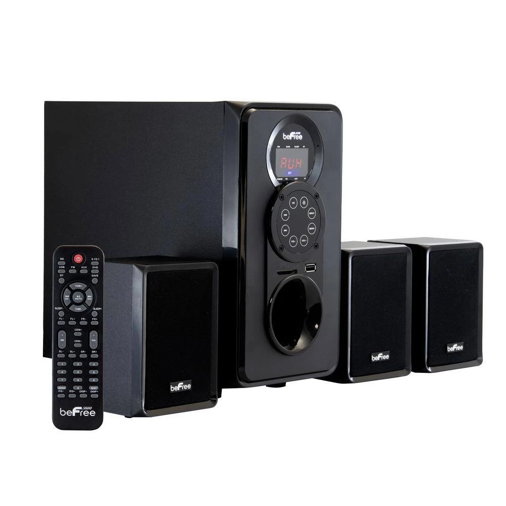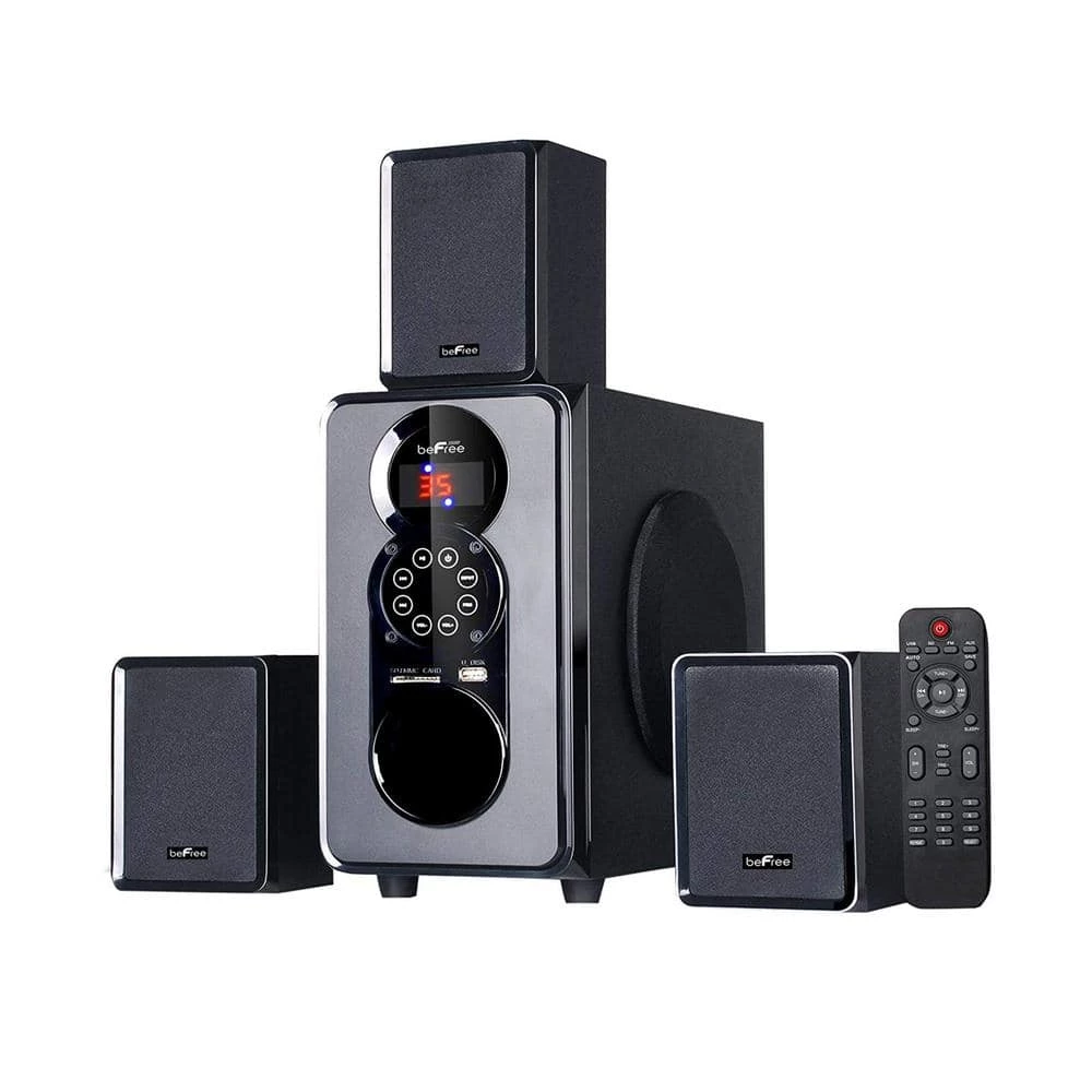 Enjoy the ultimate home theater experience with BEFREE SOUND’S 3.1 Channel Surround Sound Bluetooth Speaker System. This speaker system is designed with sophistication, featuring a sleek look and smooth sound. With Bluetooth, USB, SD and FM radio capability, the system offers the best possible listening options for your enjoyment.