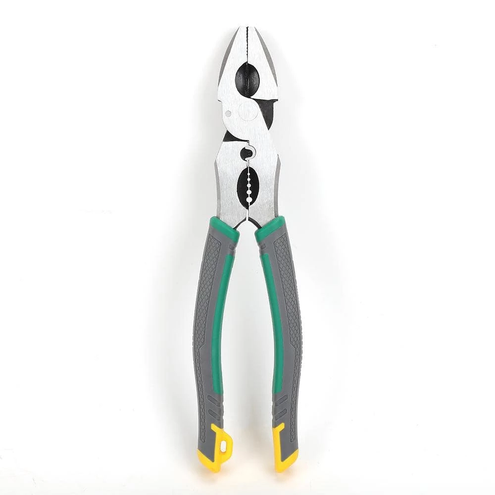 The Commercial Electric 9 in. High-Leverage Multi-Purpose Linesman Pliers is a perfect tool for the home, workshop or jobsite. Includes high leverage linesman pliers, wire stripper, wire cutter, wire looper and terminal crimping die. Also includes an ergonomic molded non-slip grip handles.