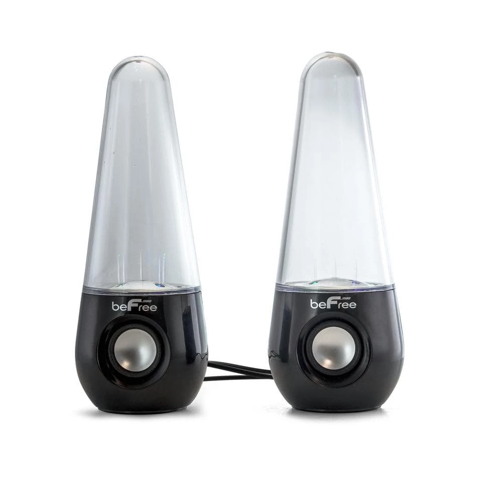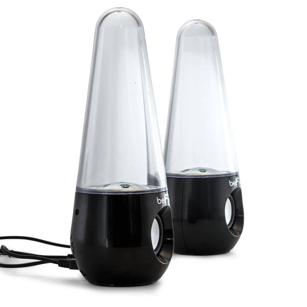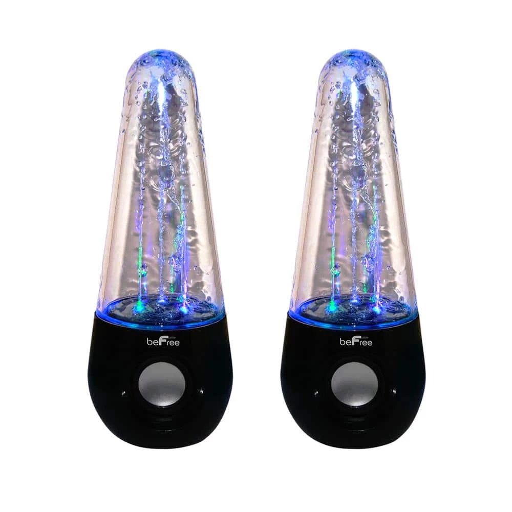 Add a captivating touch to clear sound with these BeFree Sound Bluetooth Wireless Multimedia LED Dancing Water Speakers. Easily pair these water speakers to any Bluetooth enabled devices for quality wireless sound. These speakers feature multicolored water jets that dance to the beats of your favorite hits. Not only are they fun and fashionable, they will make you experience clear and quality sound. The fun droplet shape will add a fashionable touch to your home or office, and is also perfect as a gift. These speakers are 100% nontoxic, safe and leak proof, so you can enjoy the dazzling water show worry free. Conveniently compact, bring your music in style with you to all your adventures.
