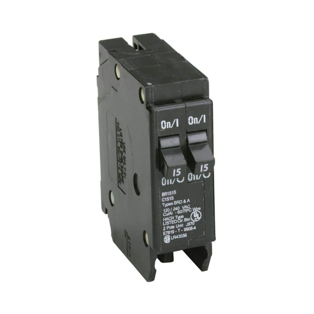 Circuit breakers protect the wires in your home from overheating (referred to as an overload) and fault currents (referred to as short circuits). The Eaton Cutler-Hammer 15/15 Amp 1 in. Duplex Type BR Circuit Breaker is also known as tandem breaker. Tandem breakers are convenient for adding circuits to a full load center and are sometimes used to reduce the physical size of the load center. This a non-circuit limiting breaker. The BR tandem line of breakers is intended for replacement purposes on load centers made prior to 1968.