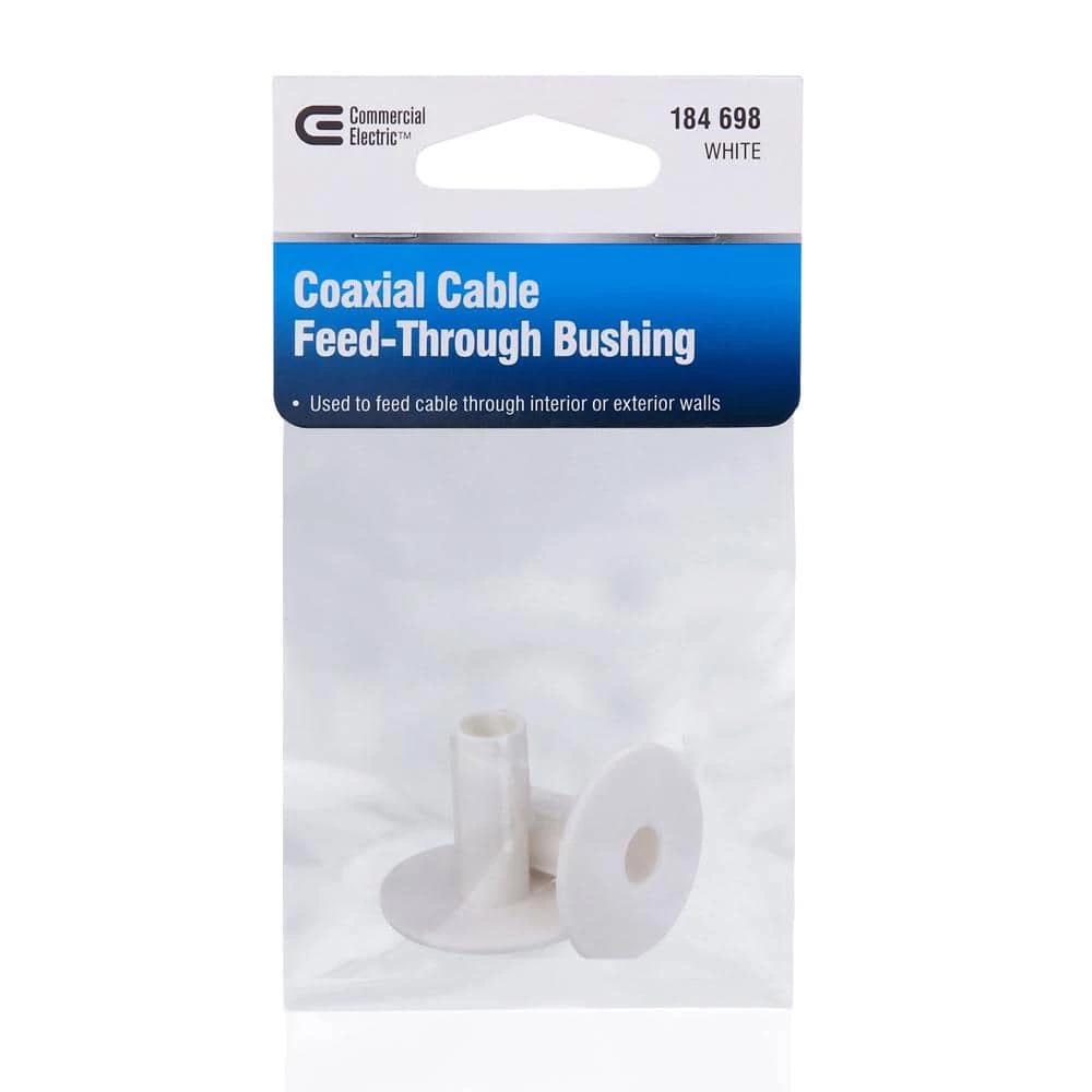 Protect in-wall wiring installs with the help of this white Coaxial Cable Bushing from Commercial Electric. This coaxial bushing not only helps feed electrical cords and cables through hard-to-access areas, but also minimizes cable abrasion.