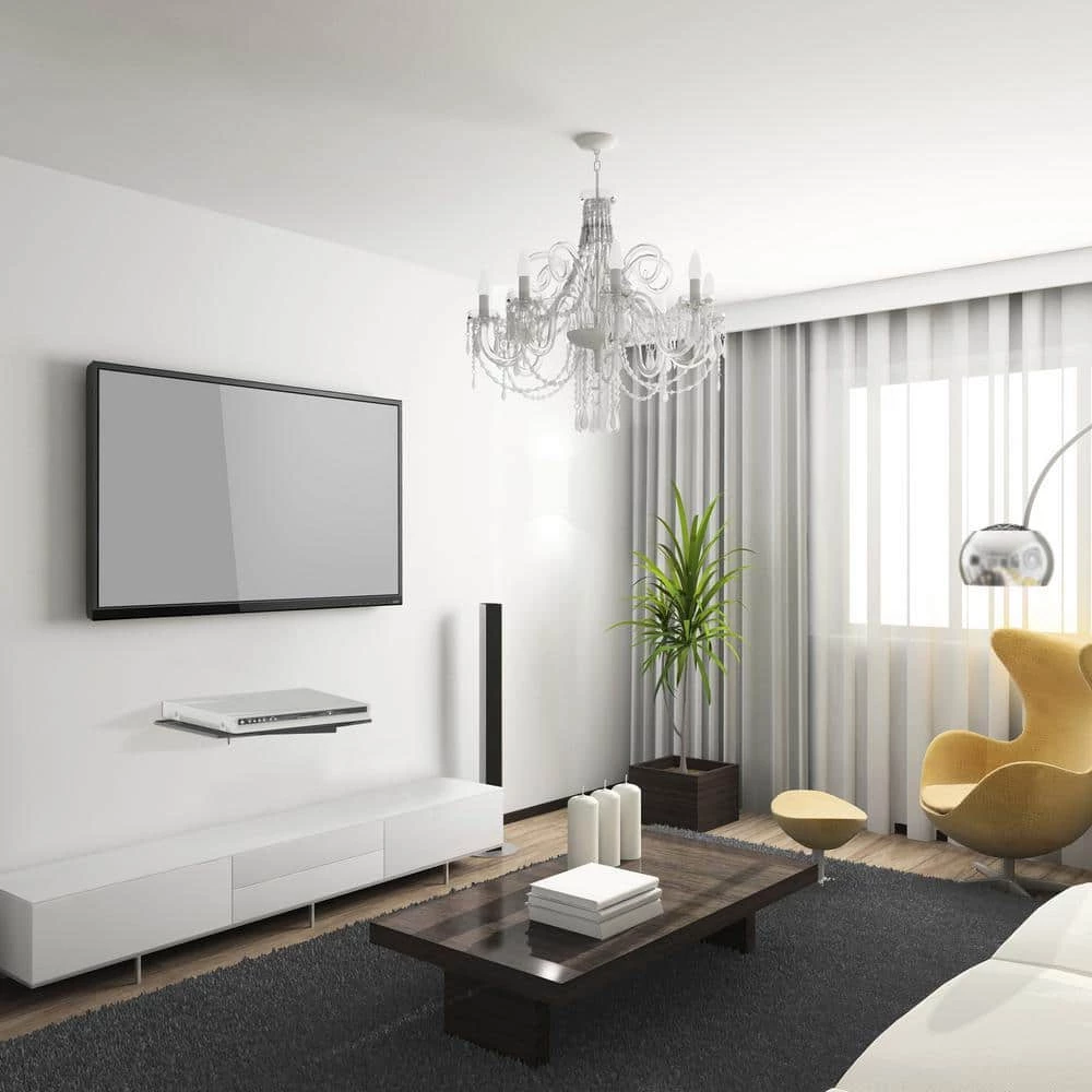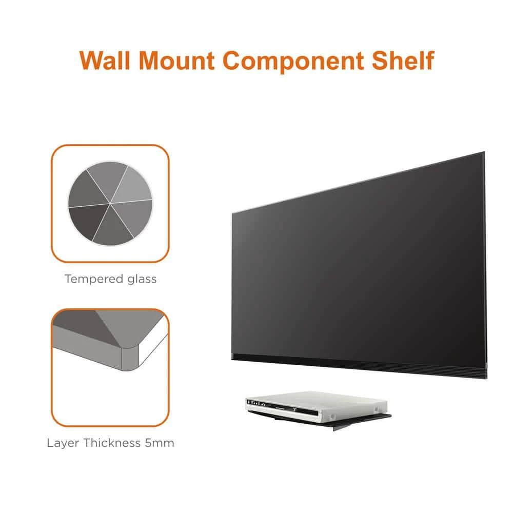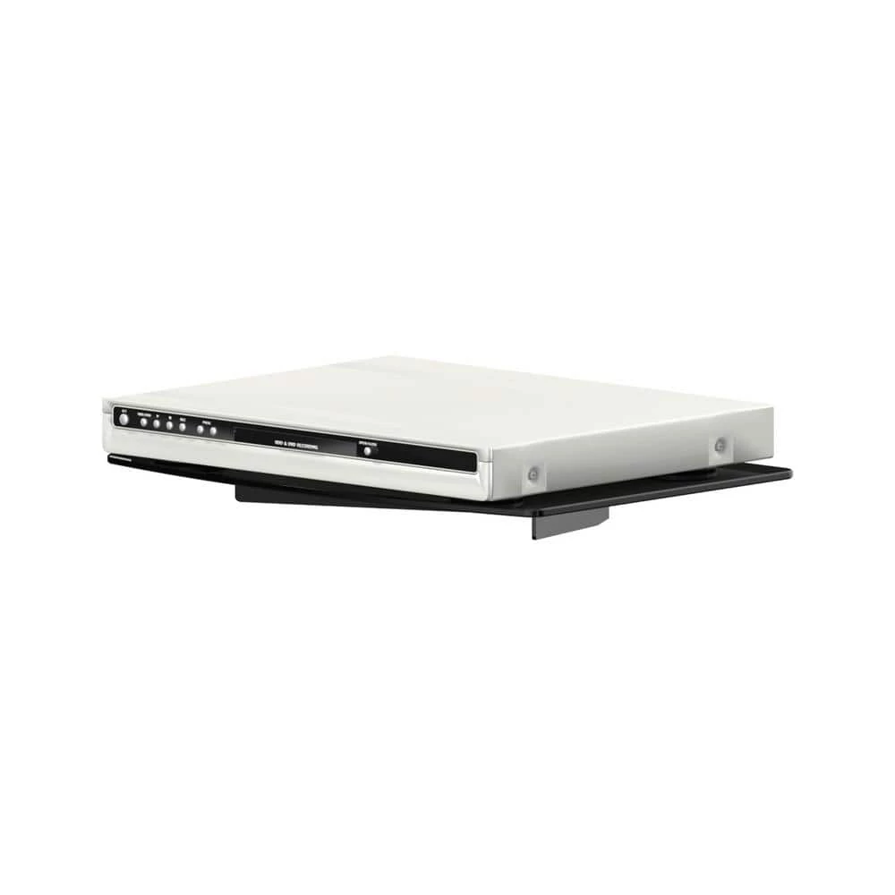 The universal component shelf wall mount can be individually mounted under or above any TV. It can hold most audio-video components like DVDs, cable box and AV systems. Height adjustable.