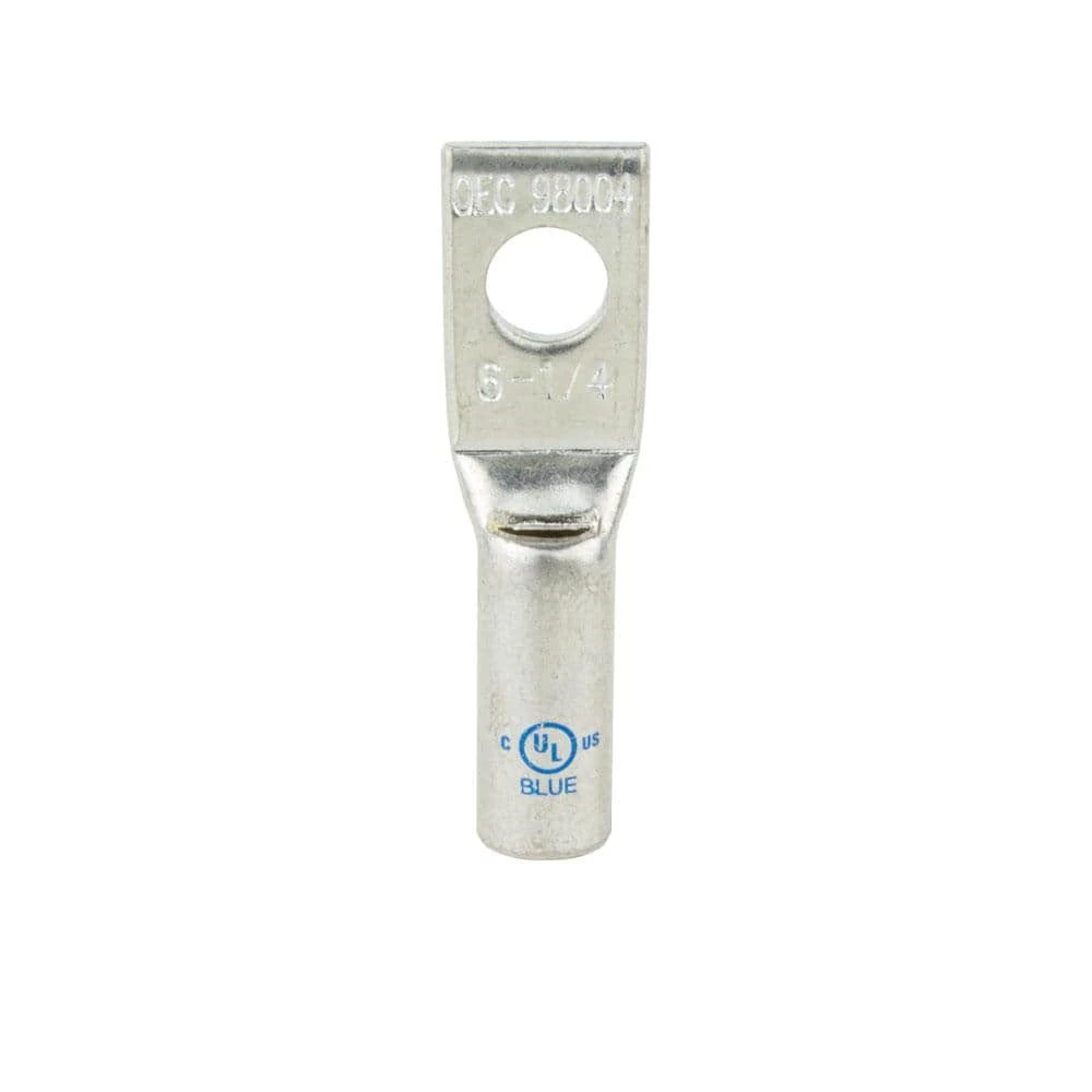 The Blue Copper 1-Hole Straight Short Barrel Compression Lug for #6 Stranded Wire is used to connect to copper conductors. This connector is designed for industrial and building applications. The lug is tin-plated for superior corrosion resistance.