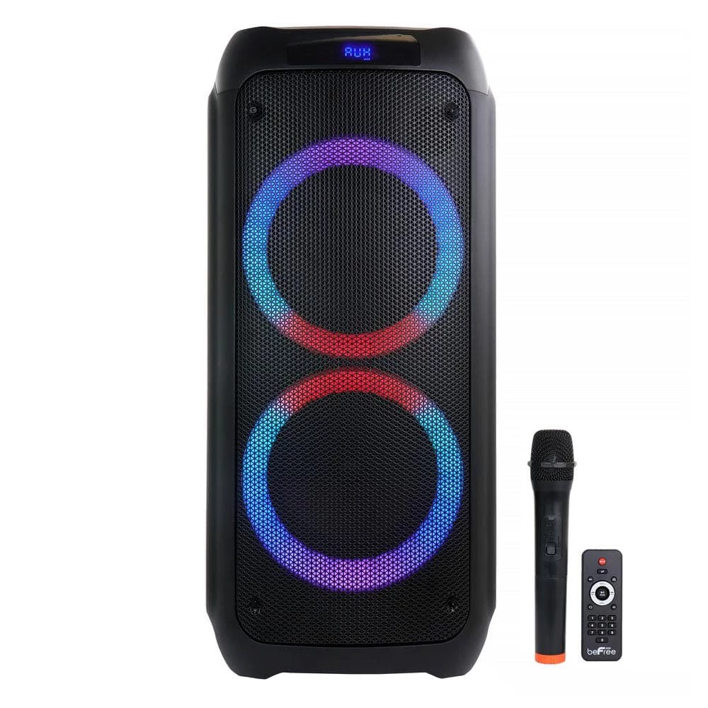 Step into a world of quality sound with the BEFREE SOUND Dual 8 in. Bluetooth Wireless Portable Party Speaker with Reactive Lights. The ultimate sound machine for all your listening needs. Perfect for all size gatherings indoors and out, boosts great quality sound that will get any crowd moving and grooving. Reactive lights will also entertain your audience with it’s multi-colored light show.