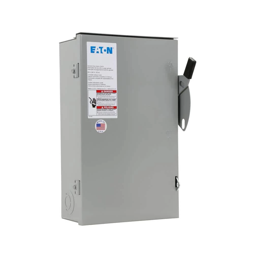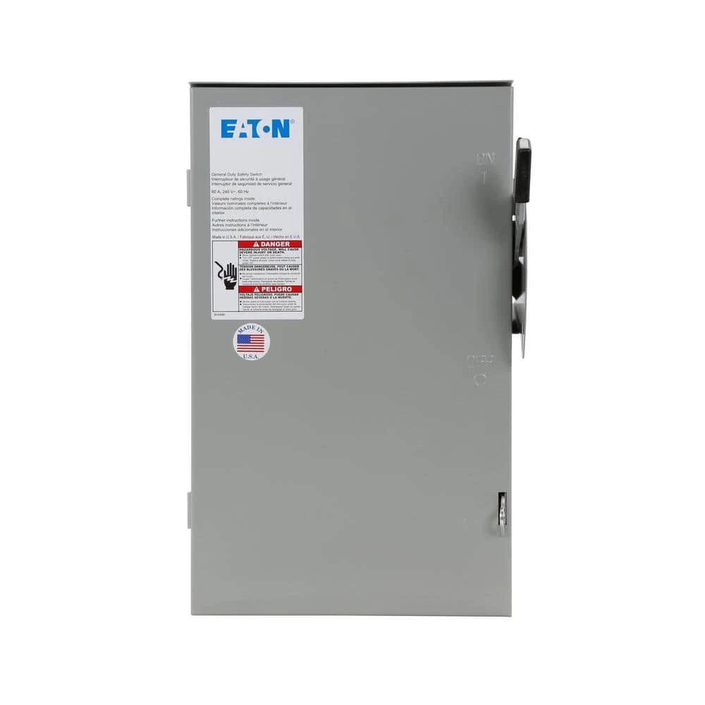 Non-fusible safety switches provide a means to manually connect or disconnect the load from the source. Switches are load break ready. This is a 60 Amp general duty non-fusible safety switch rated for outdoor use.