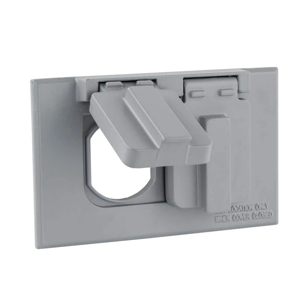 Commercial Electric weatherproof device duplex covers are designed to provide weatherproof protection for an outdoor receptacle. Covers have a self-closing lid. Covers are for mounting to a device.