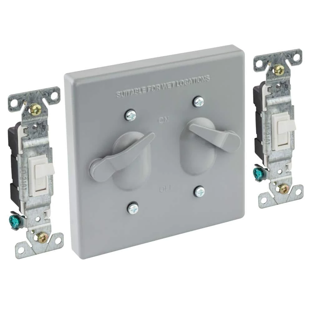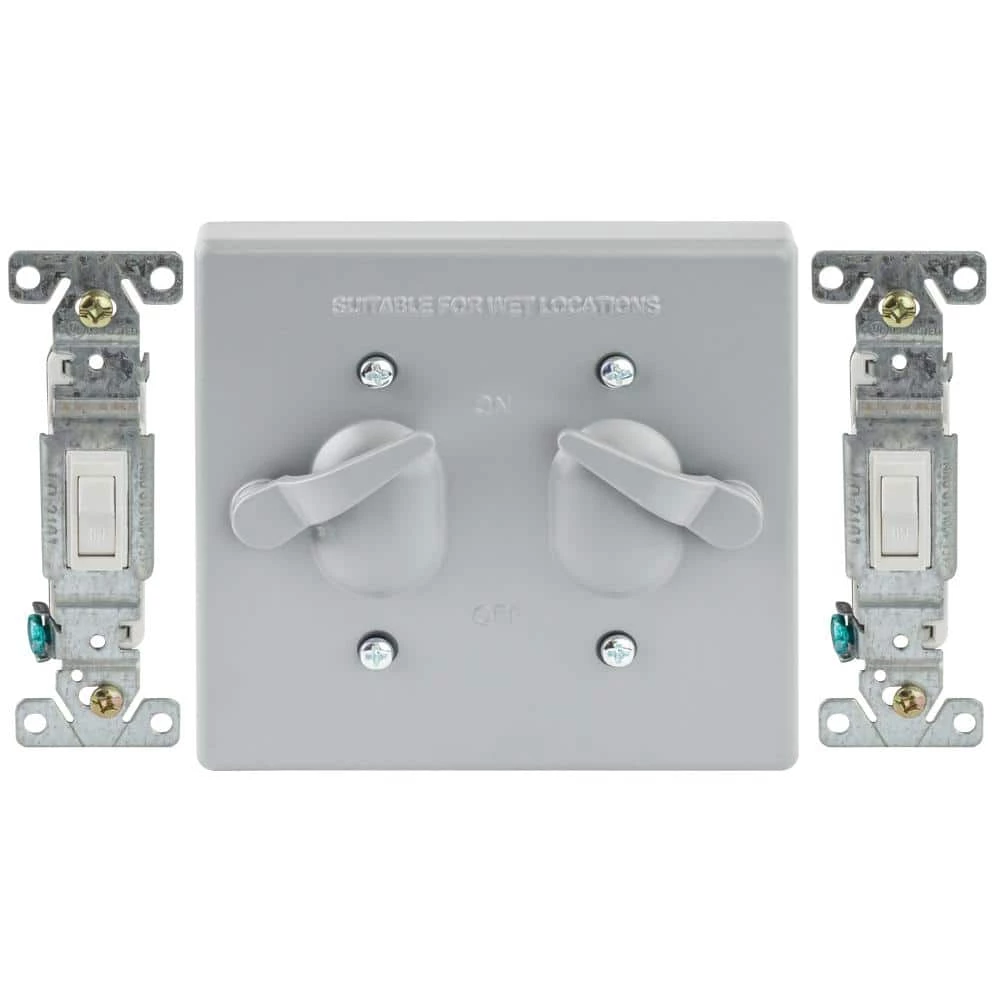 Commercial Electric weatherproof lever switch covers are designed to provide weatherproof protection for an outdoor on-off toggle switch. Toggle covers are made from rugged metallic construction. The state of the art powder coat finish provides maximum weather ability and scratch resistance.