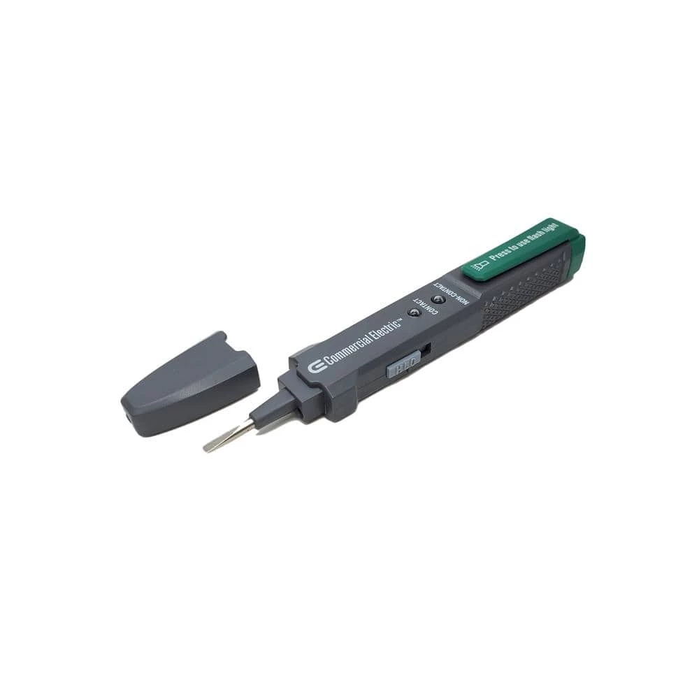 The Commercial Electric Voltage Tester NCS-8904R is the contact/non-contact voltage tester, which could be used on 70 – 250 AC circuit, socket and wires. The tester features the continuity test. Flash light and self-testing design are creative on this tester.