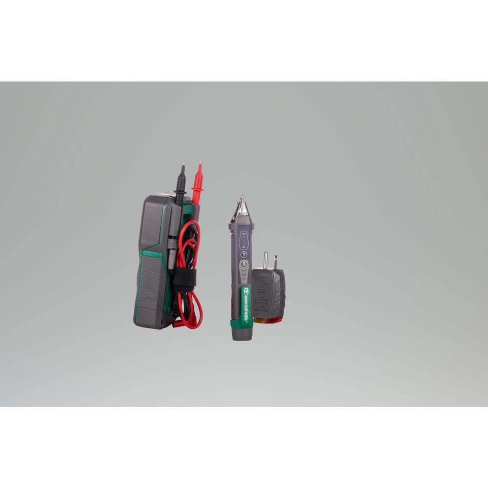 - Kit contain: manual ranging multimeter, NCVT detector and GFCI outlet tester, AAA batteries, test leads and user manuals included