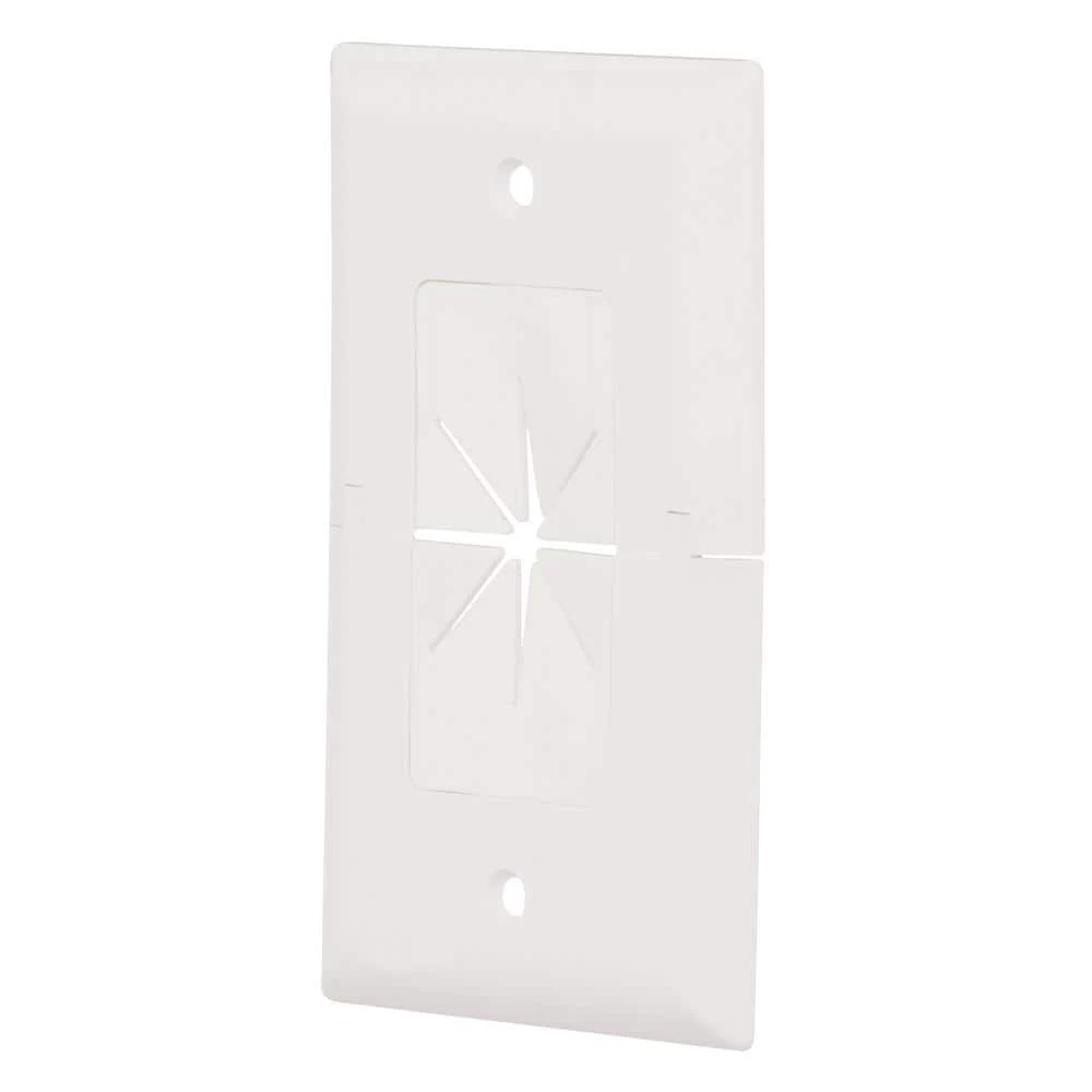 Commercial Electric’s patented 1-Gang Split Wall Plate is used to install low voltage cables behind your HDTV, amplifier or other audio/video devices. With the split design, this cable plate can be installed around existing low voltage cables run through the wall, eliminating the need to re-pull wires keeping the opening in the wall covered. Its horizontally split design allows for easy installation and removal.