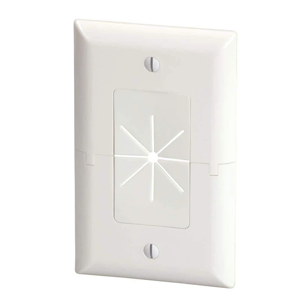 Commercial Electric’s patented 1-Gang Split Wall Plate is used to install low voltage cables behind your HDTV, amplifier or other audio/video devices. With the split design, this cable plate can be installed around existing low voltage cables run through the wall. This eliminates the need to re-pull wires keeping the opening in the wall covered. It’s horizontally split design allows for easy installation and removal.