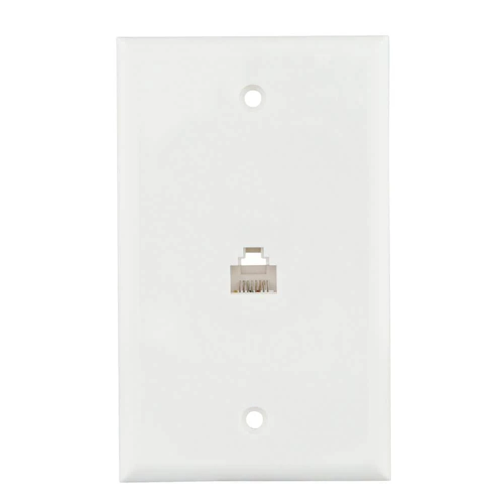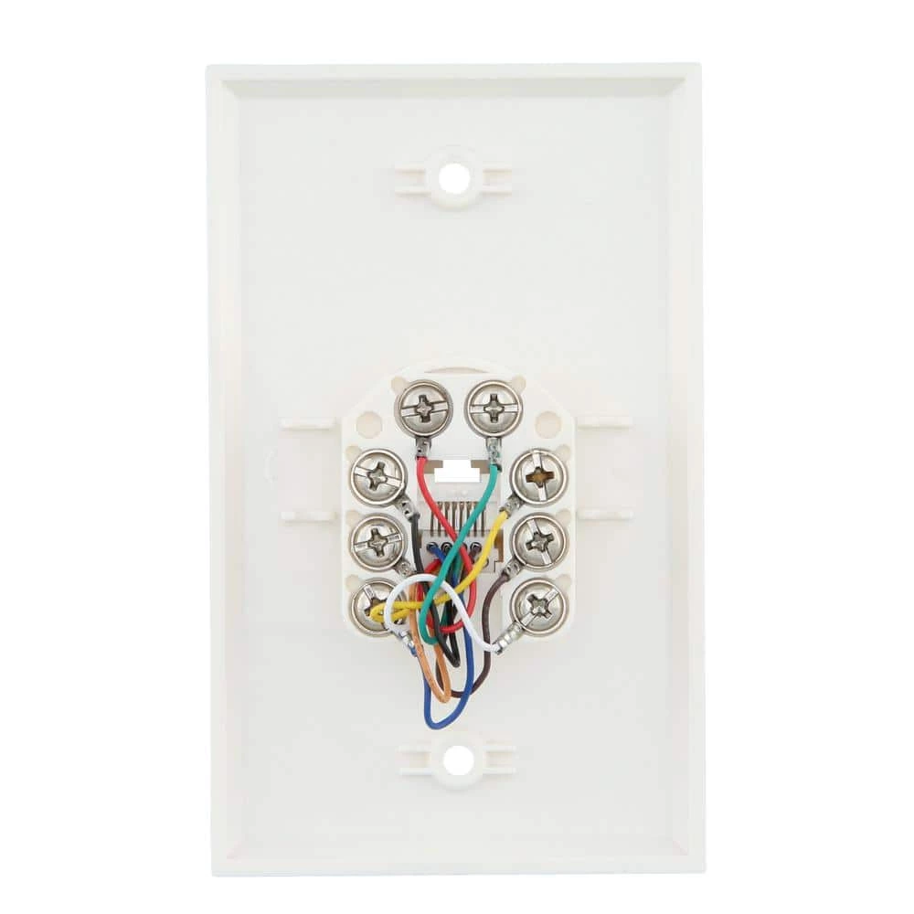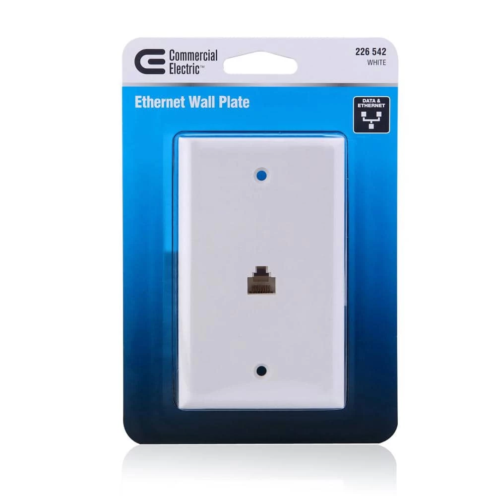 The Commercial Electric Ethernet Wall Plate provides in-wall connection to wall mountable phones and other phone accessories. Compatible with Cat5 and Cat5e network cables that permit data transmission for answering machine, fax, modem, caller ID and more. Color-coded terminals simplify the wiring process.