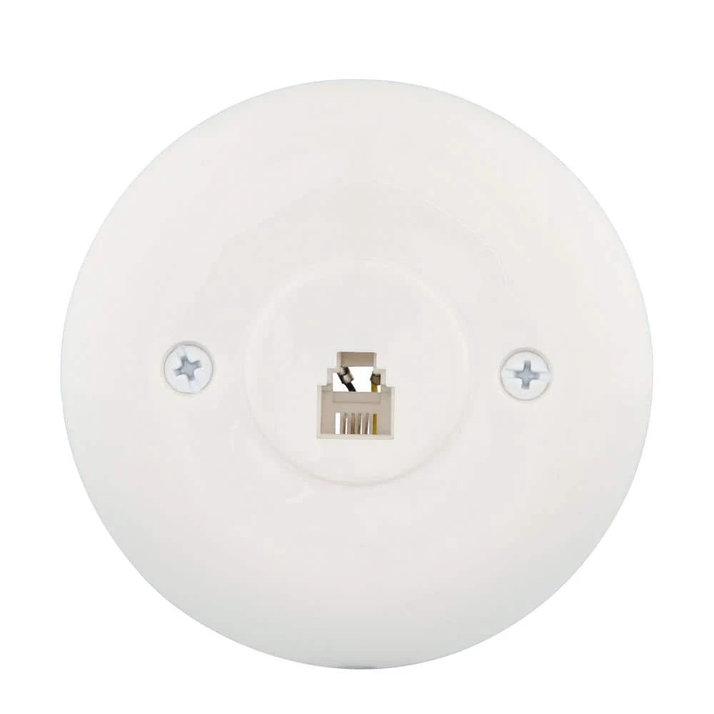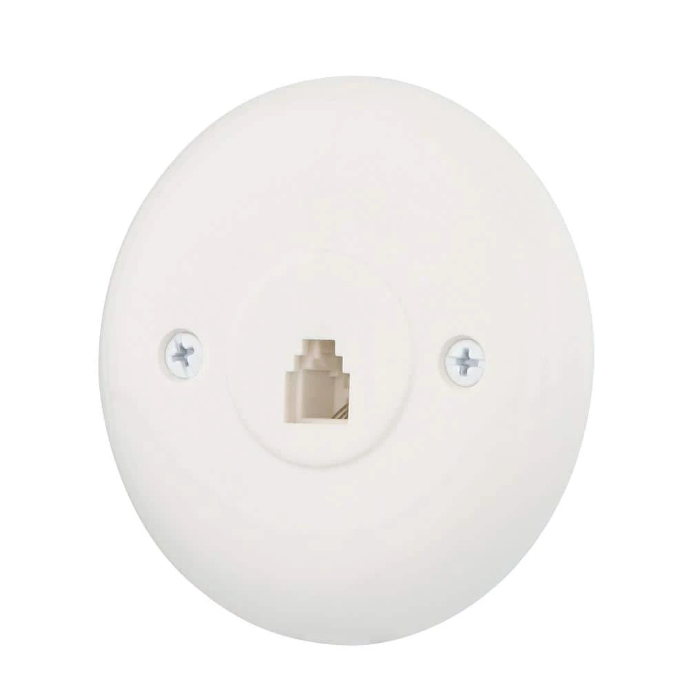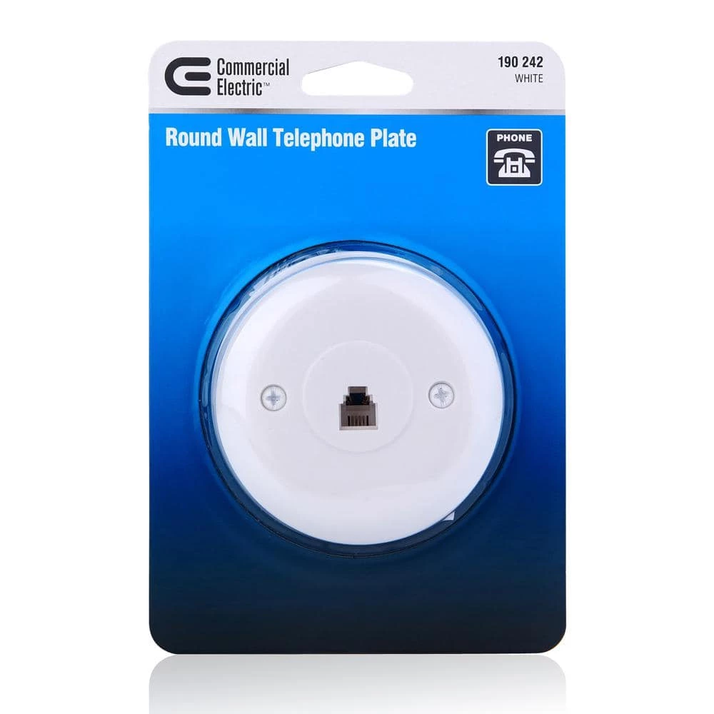 The Commercial Electric Round Wall Jack has a single-jack receptacle that accommodates a phone line. Features a circular design in white that will fit in with any decor. Made to fit standard wall plate outlets.